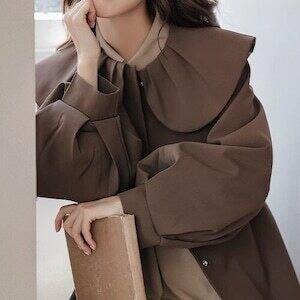 ✅ビッグカラーコート ボリュームスリーブ ミディ丈 ガーリー E587