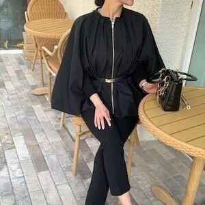 ✅ケープジャケット ノーカラー ベルト付 エレガント E508
