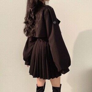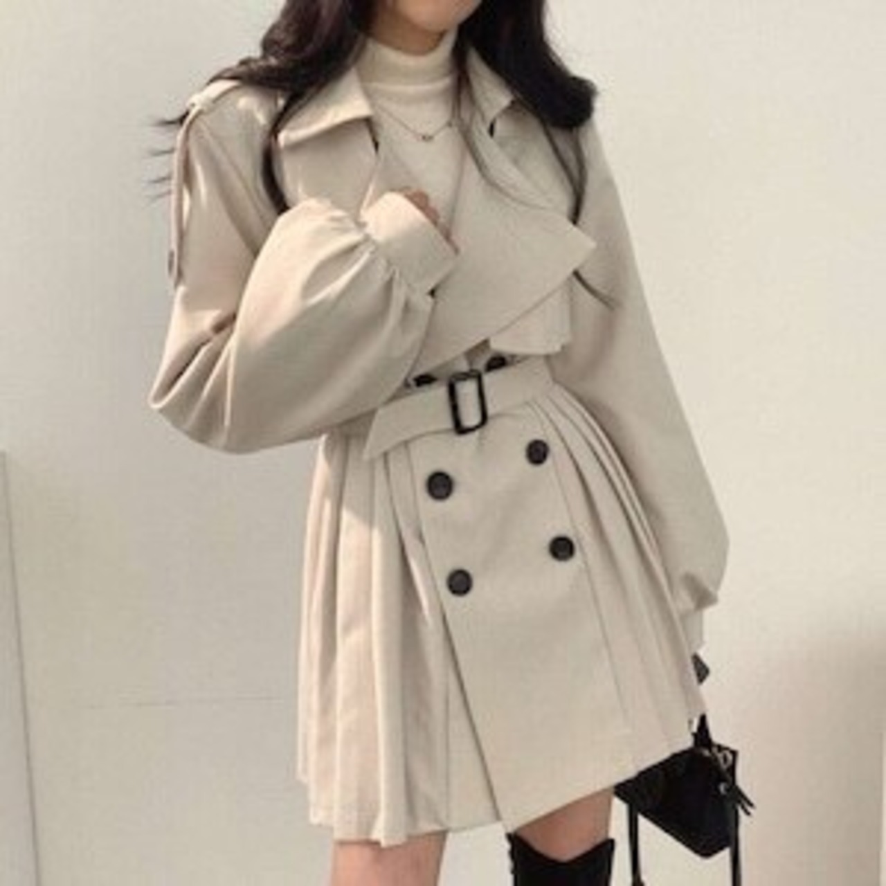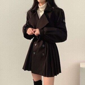 ✅プリーツトレンチコート ショート丈 トレンチ ガーリー E458