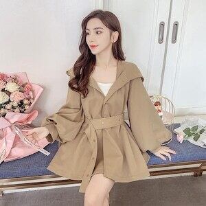 ✅フード付トレンチコート バルーンスリーブ ジャケット ガーリー E456