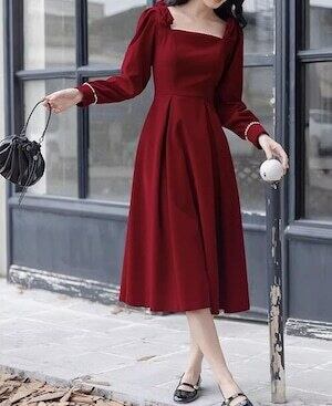 ✅パールステッチワンピース ショルダーリボン スクエアネック ガーリー E562