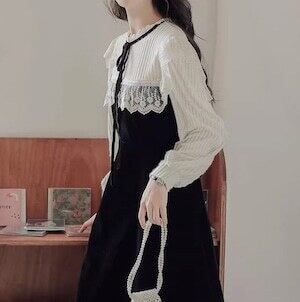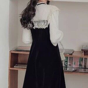 ✅ドッキングワンピース リボン レトロ フェミニン ガーリー E553