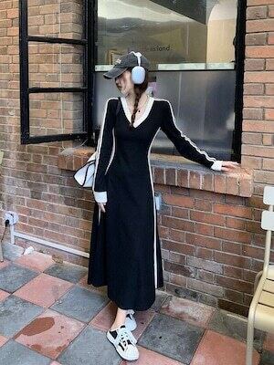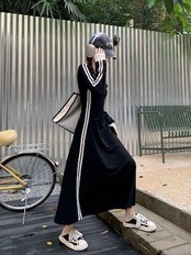✅サイドラインワンピース Vネック スポーティー カジュアル E543
