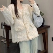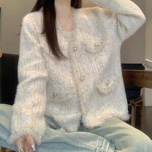 ✅パールモチーフカーディガン ニットカーデ シャギーニット エレガント E639 ¥4,500