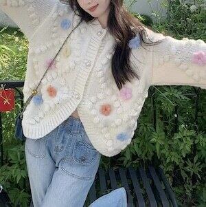 ✅フラワーモチーフカーディガン ニットカーデ ガーリー E637