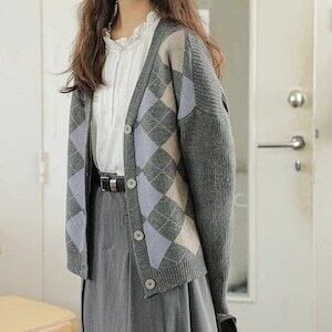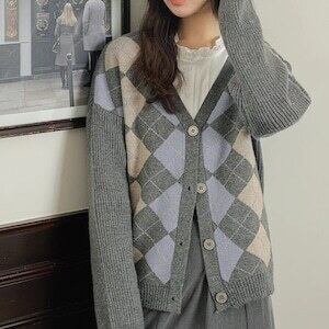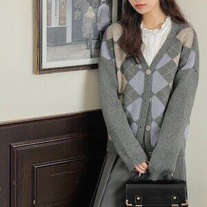 ✅アーガイル柄カーディガン ニットカーデ Vネック エレガント E630