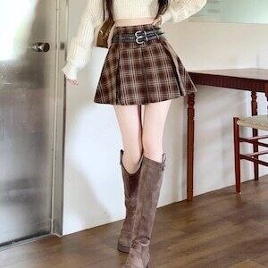 ✅チェック柄スカート ミニスカート ベルト ガーリー E564