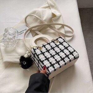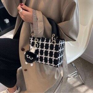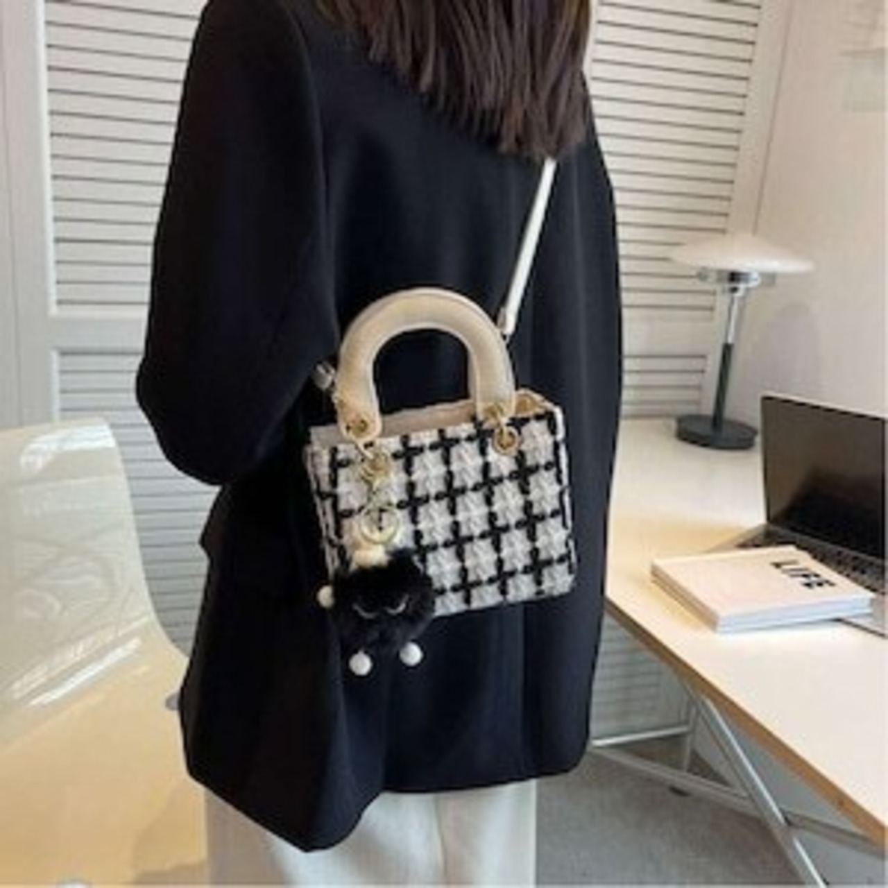 ✅チェック柄バッグ ミニバッグ ハンドバッグ ショルダー マスコット付き E582