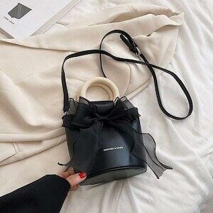 ✅メッシュリボンバッグ バケットバッグ ショルダーバッグ ガーリー E385