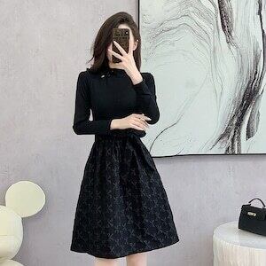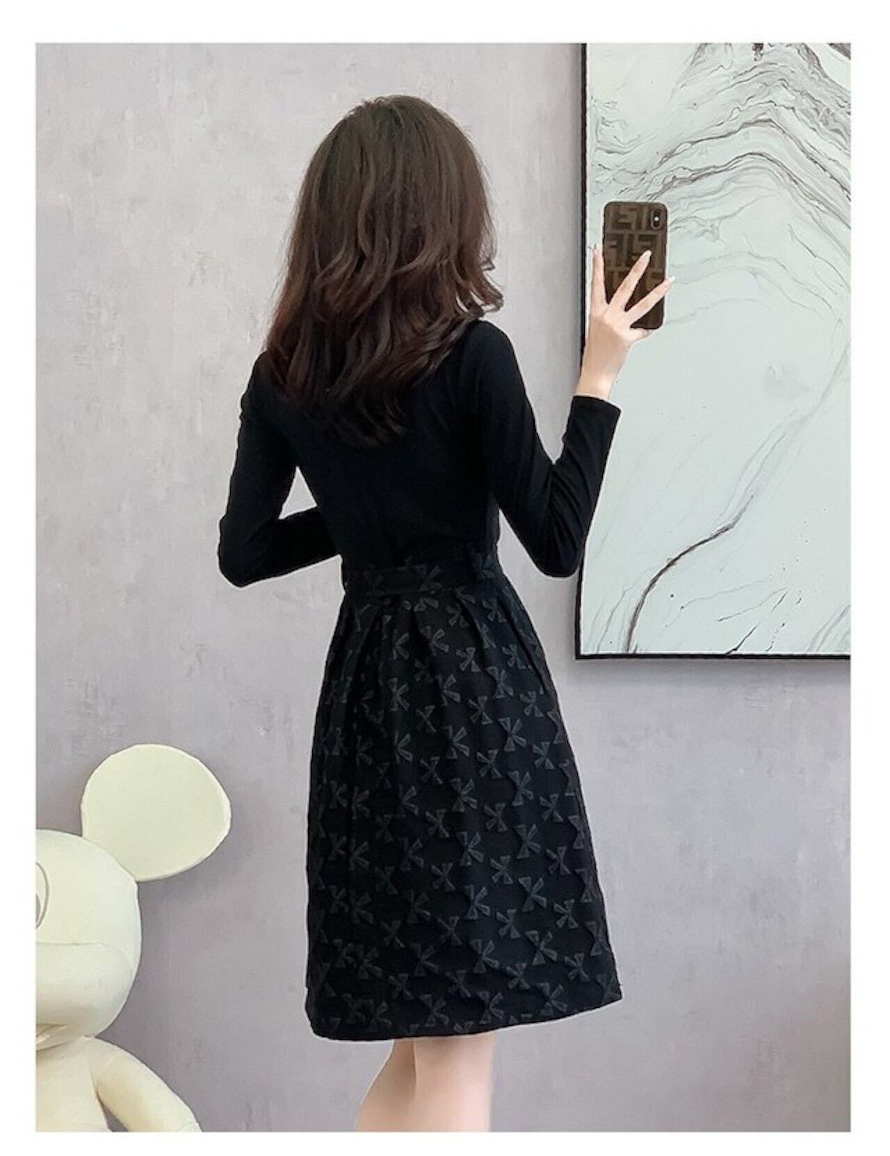 ✅リボン柄ワンピース ウエストリボン レトロ ガーリー お呼ばれ E545