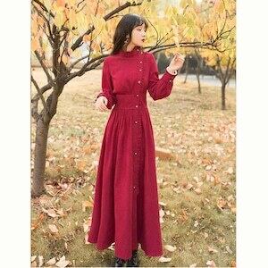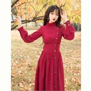 ✅コーデュロイワンピース レトロワンピ お呼ばれ ドレス ガーリー E452