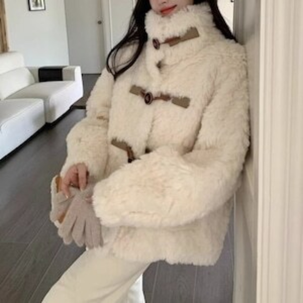 ✅フェイクファーコート スタンドカラー ショートコート カジュアル E660