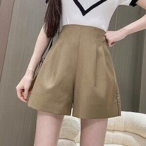 タックパンツ ショートパンツ サイドボタン エレガント E426は、洗練されたデザインと快適な着心地で人気の商品です。サイドのボタンがアクセントで、スタイリッシュな印象を演出します。着用すると脚長効果もあり、美しいシルエットに見せてくれます。さらに、繊細なタック使いも特徴で、女性らしさを引き立てます。様々なトップスとの相性も抜群で、カジュアルなコーディネートからオフィススタイルまで幅広く合わせられます。着用した時の快適さや自信が、あなたの魅力をさらに引き出します。是非、お試しください。