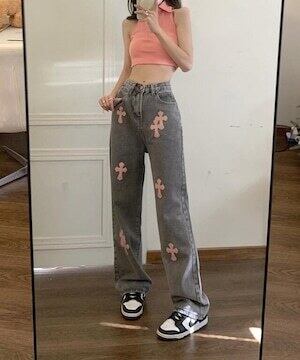 ✅クロスデザインデニム ストレートデニム カジュアル ストリート E293