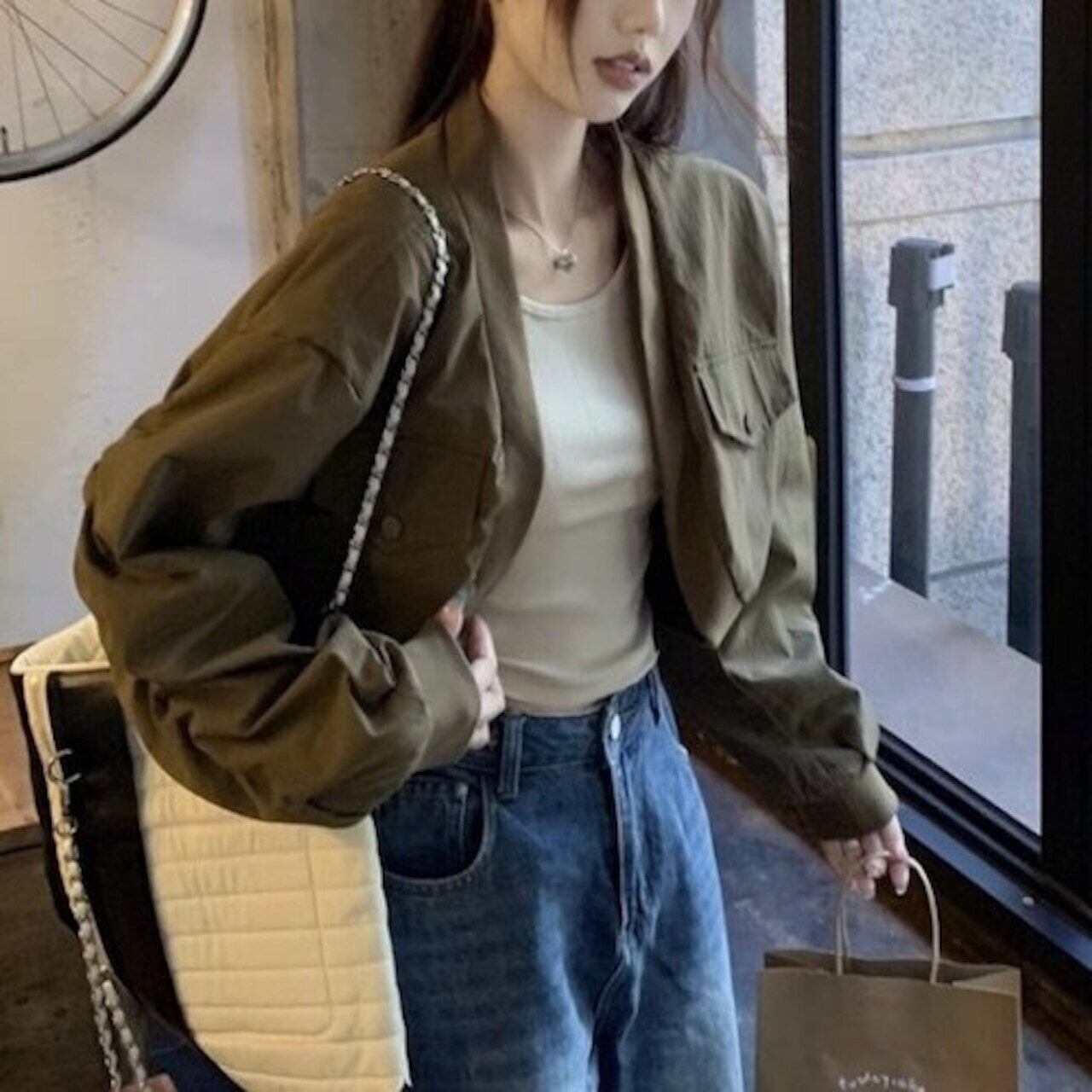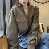 ✅カジュアル ガーリーショート丈ブルゾン ジャケット ギャザースリーブ E585