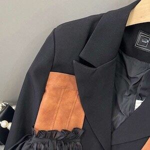 エレガントなデザインとフリルの切り替えが特徴のドッキングジャケットです。華やかさを演出するフリルデザインは、女性らしさを引き立てます。ブラックとホワイトの2色展開で、どんなスタイリングにも合わせやすい一着です。