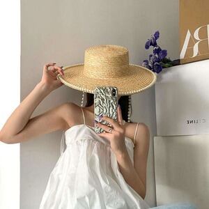 ✅ストローハット ガーリーパールモチーフハット 麦わら帽子 E301
