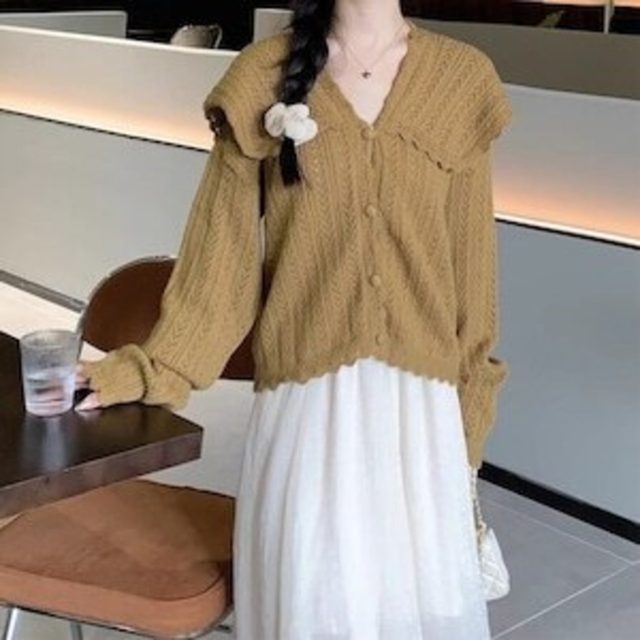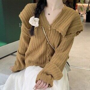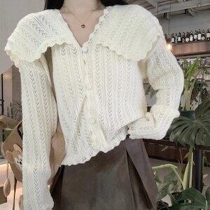 ✅ビッグカラーカーディガン ニットカーデ ガーリー フェミニン E636