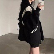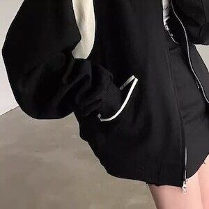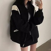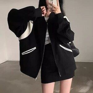 ✅カジュアル ルーズ E589メンズライクバイカラーブルゾン ジャケット