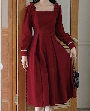 ✅スクエアネック ガーリー E562パールステッチワンピース ショルダーリボン