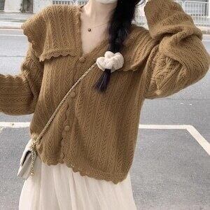 このビッグカラーカーディガンを羽織ることで、女性ならではの柔らかで優雅な雰囲気を演出しましょう。ぜひ、あなたのお洋服コレクションに加えてみてください。