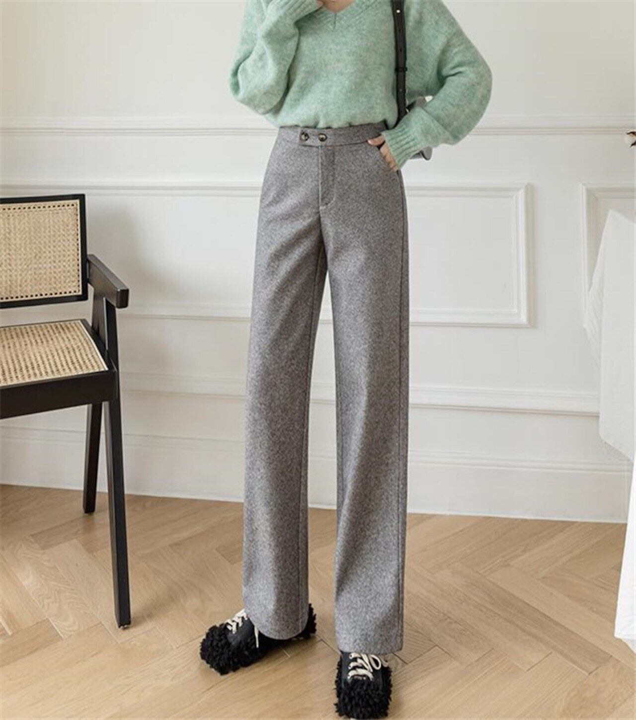 ✅ウールパンツ ハイウエスト ドレープ ズボン C265