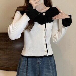 ✅ セーター ガーリー E645ニット パールボタンフリルカラー