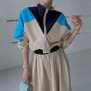 Aラインシルエットが女性らしいセットアップが登場しました!スポーティーなデザインとお洒落な色使いが特徴で、オン・オフの幅広いシーンで活躍します。ジャケットはフロントのファスナーがアクセントで、スカートはウエストゴム仕様で着心地も抜群です。さらに、ストレッチ素材を使用しているので、動きやすさもバツグン!トップスとしても、ボトムスとしても使えるので、コーディネートの幅も広がります。
