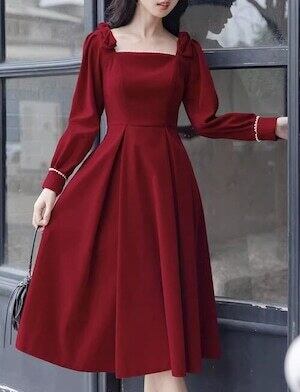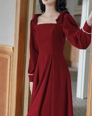 ✅リボン ワンピース ショルダースクエアネック ガーリー E562パールステッチ