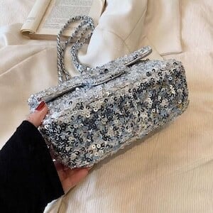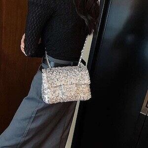 このバッグは、エレガントな雰囲気を作り出すお呼ばれやパーティーの場に最適です。シンプルなデザインながらも、存在感があり、コーディネートを引き立てること間違いありません。おしゃれな仲間たちとの特別な日に、このグリッターバッグを持って輝いてください。