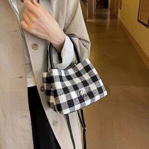可愛らしいチェック柄のミニバッグです。ショルダーストラップ付きで、手持ちでも肩掛けでもお使いいただけます。コンパクトなサイズ感ながらも、必需品やちょっとした小物がしっかり収納できる優れものです。さまざまなコーディネートに合わせやすく、ガーリーな印象を演出します。