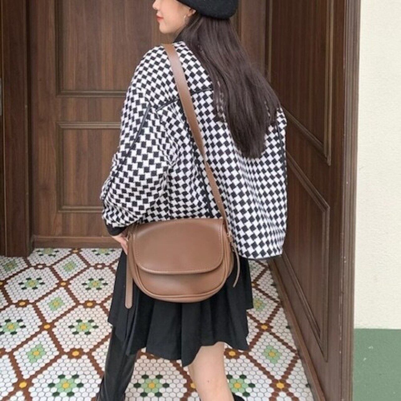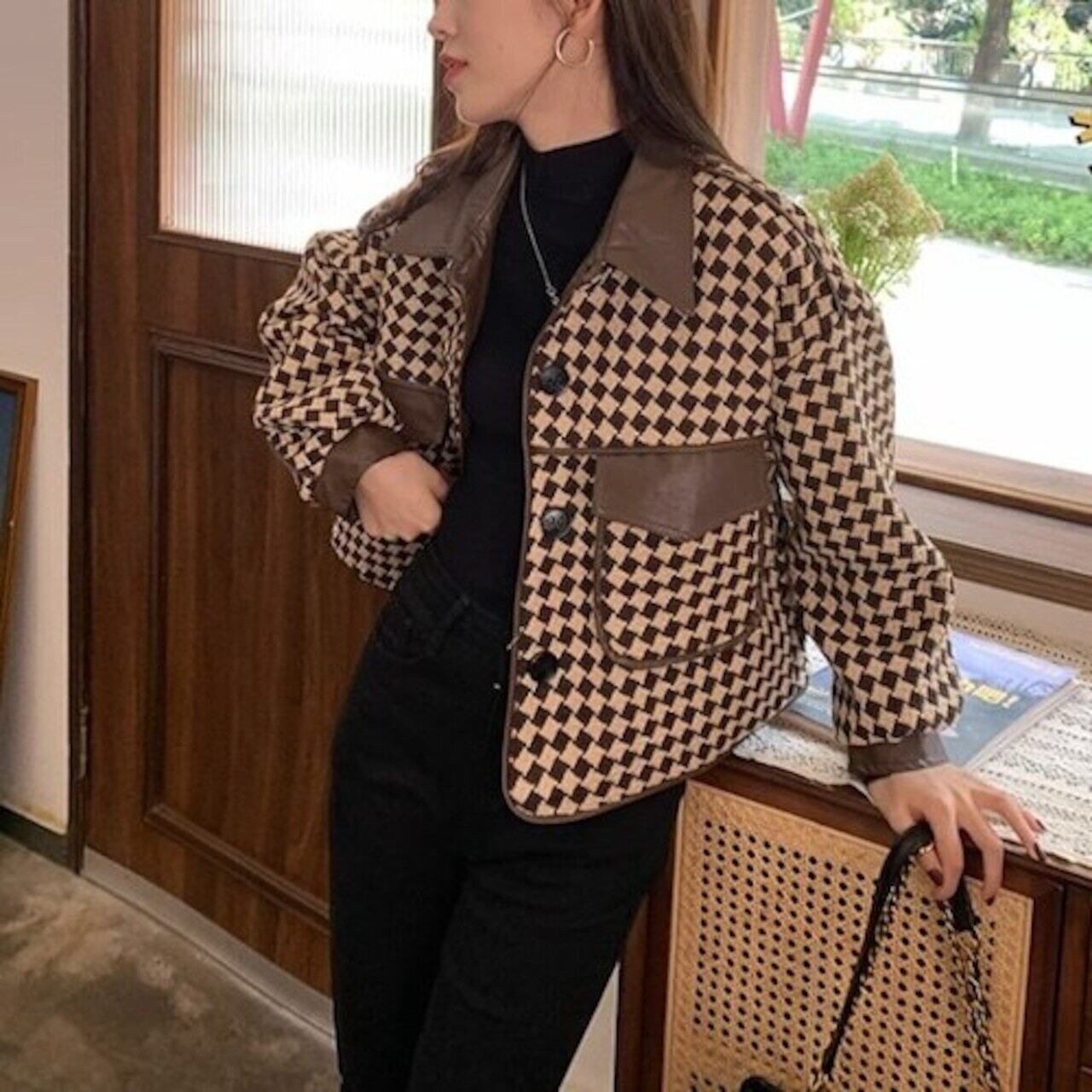 ✅ジャケット 千鳥格子柄フェイクレザードッキング カジュアル きれいめ E583
