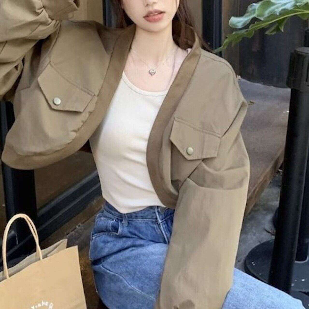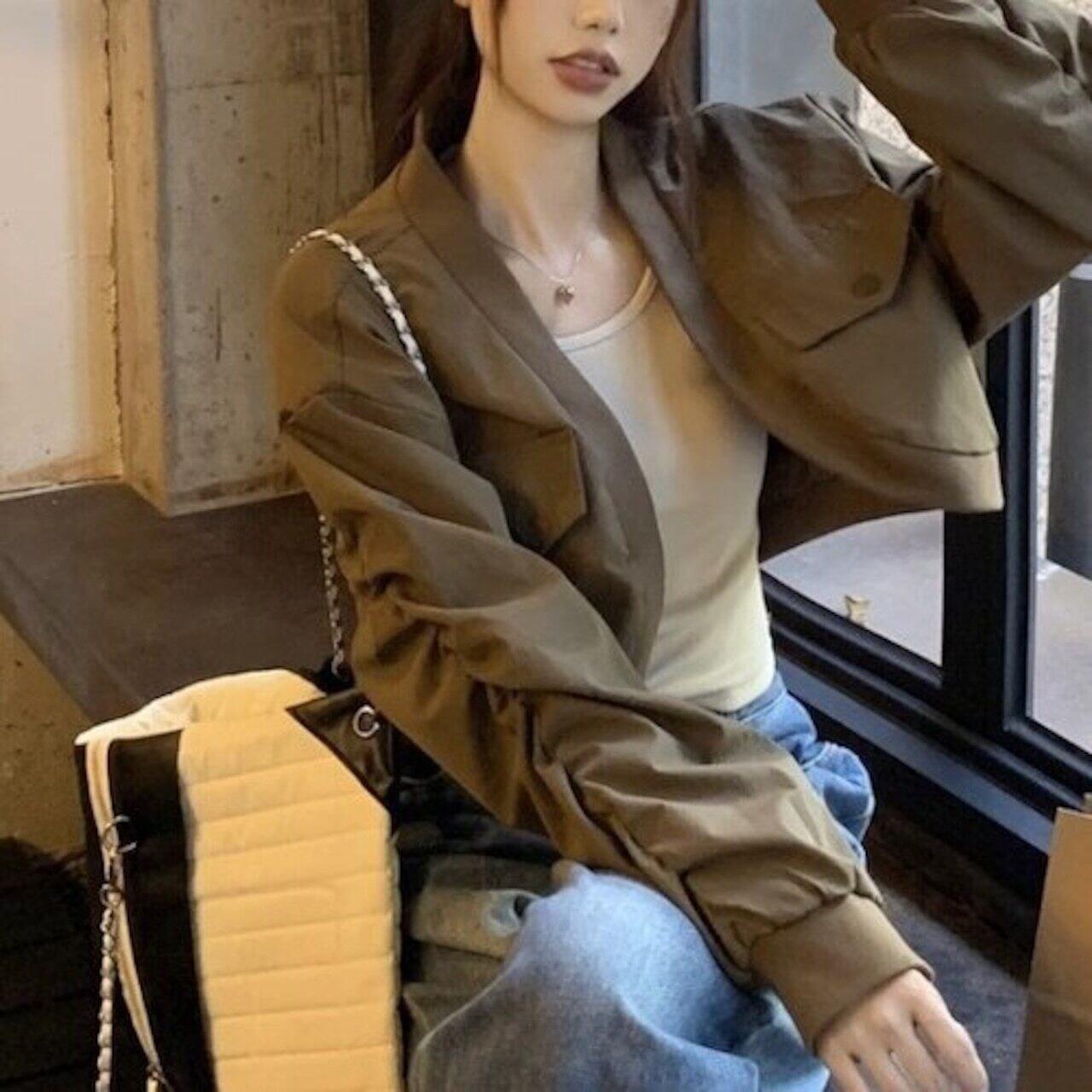 ✅ギャザースリーブ カジュアル ガーリー E585ショート丈ブルゾン ジャケット