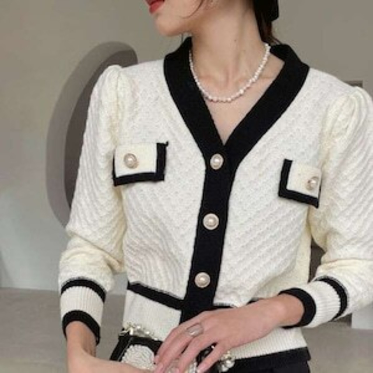 エレガントなVネックカーディガンが新登場!オフィスカジュアルやデートシーンにぴったりの一着です。柔らかな素材と綺麗なシルエットが、女性らしさを引き立てます。
