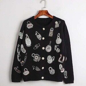 華やかなビーズデザインが目を引くエレガントなカーディガン。パーティーやお呼ばれシーンにぴったりの一枚です。豪華なビーズ装飾に加え、ニット素材の柔らかさと温かさも魅力の一つ。身に着けると、華やかさをまとうだけでなく、あたたかみも感じられます。