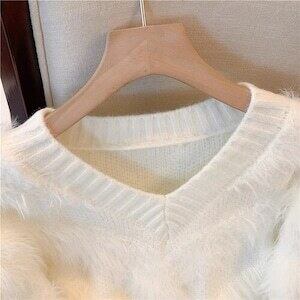 ✅シャギーニット Vネックセーター カジュアル ガーリー E655