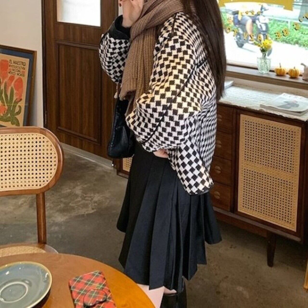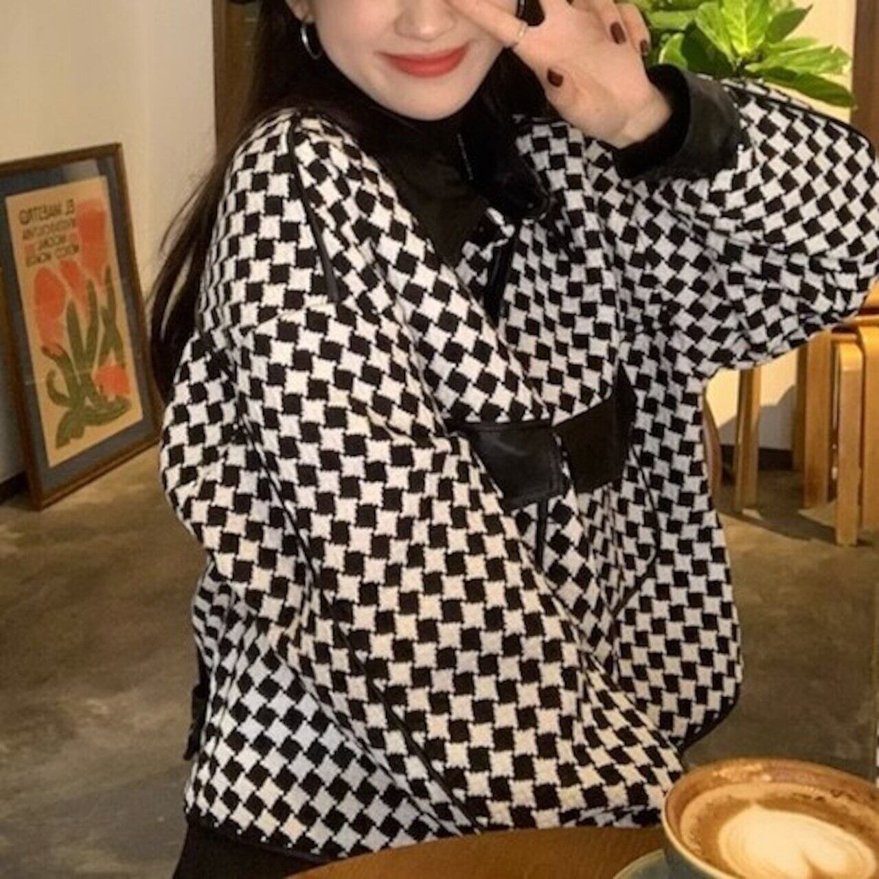 ✅カジュアル きれいめ E583ジャケット 千鳥格子柄フェイクレザードッキング
