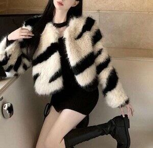 ✅ ショート丈コート ゼブラ柄コート エレガント フェイクファーE596