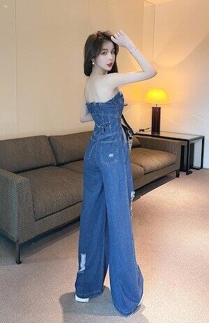 アクティブなスタイルを演出するダメージデニムカジュアルE397デニムオールインワン!ベアトップデザインで女性らしい魅力を引き立てます。おしゃれなデニム素材に加え、ダメージ加工を施しているため、スタイリングにアクセントを加えることができます。一着でコーディネートが決まるので、忙しい朝にもピッタリです。ストリートファッションやカジュアルなイベントなど、様々なシーンで活躍します。大胆で自由なファッションを楽しみたい方におすすめです。