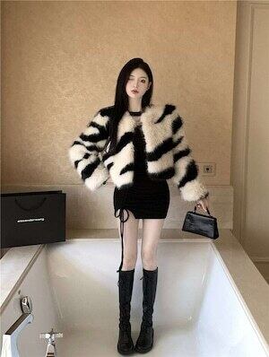 ✅ コート ゼブラエレガントコート ショート丈 フェイクファー柄E596