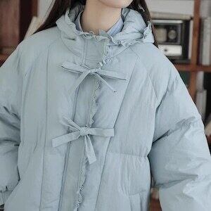 ✅リボンモチーフダウン フリル コート ガーリー フェミニン E662