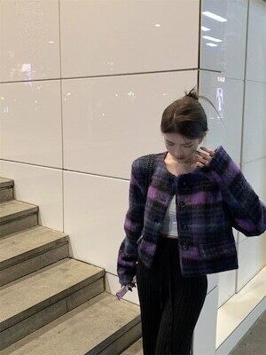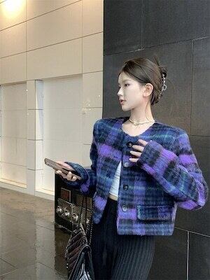 ✅レトロ ガーリー E601チェック柄コート ショートコート