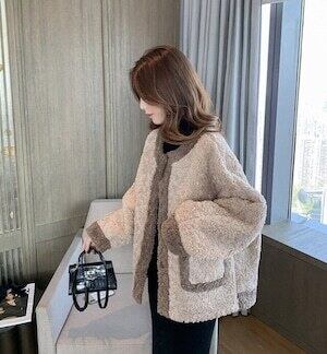 ✅mokomokoカジュアル ガーリー E578ノーカラーデザ