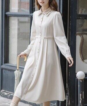 ✅リボン エレガントダブルカラーワンピース レトロ ウエスト E563