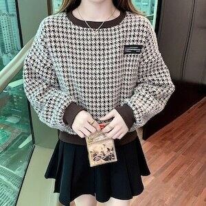 ✅千鳥格子柄ニット セーター ベーシックニット カジュアル E644