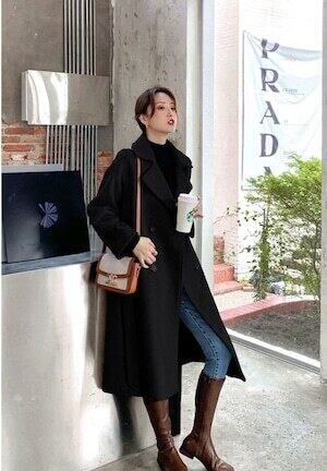 ✅ウエストリボンウールコート ロング丈 エレガント きれいめ E576