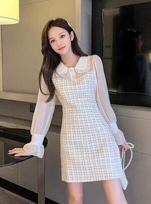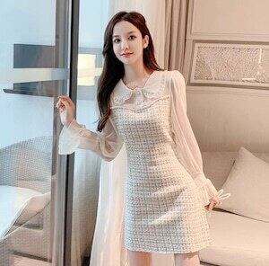 ✅シアーワンピース ツイードワンピース ミニ丈 フェミニン デート E544