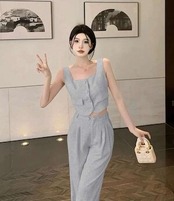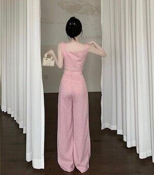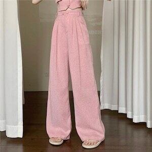 ✅スリーブカジュアルセットアップ ノートップス ワイドパンツ E263