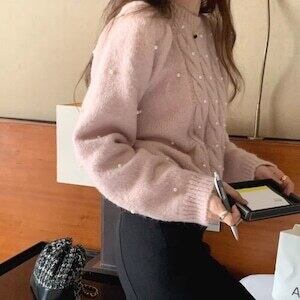 ✅ ニットセーター カジュアルパールケーブル ガーリー E652