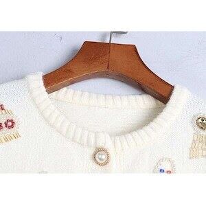 ビーズデザインカーディガンは、シンプルなトップスやワンピースとの相性も抜群。一枚で主役級の存在感を放つことができます。